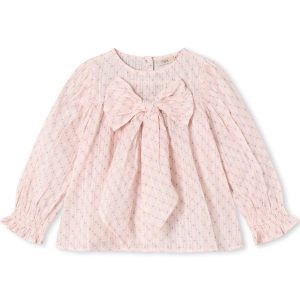 Zorro ls bow blouse – chalk pink check aop