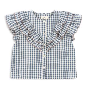 Kim frill ss shirt – captain blue check