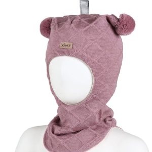 Balaklava ull med krone, waffle knit – gammelrosa