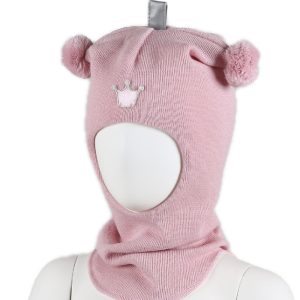 Crown balaklava ull – lys babyrosa multicolor bobbles