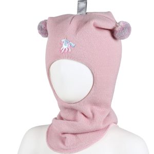Unicorn balaklava ull – pudderrosa multicolor bobbles