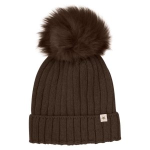 Hat Knit Alpaca Pompom – Dark Brown Melange