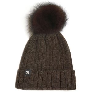 WARMY knithut wool fold up w/alpaca pompom – brown/brown