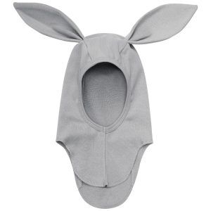 Baby balaclava cotton rib with rabbit ears – cloud gray