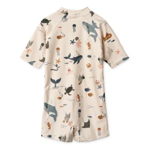 Max printed shortsleeve swim jumpsuit – sea creature/sandy