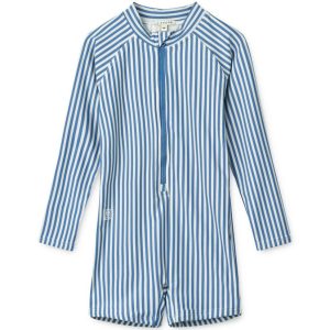 Max stripe longsleeve swim jumpsuit – Y/D stripe riverside/creme de la creme