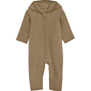 Pram suit with ears cotton fleece – camel melange