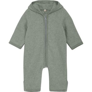 Pram suit with ears cotton fleece – lily pad melange